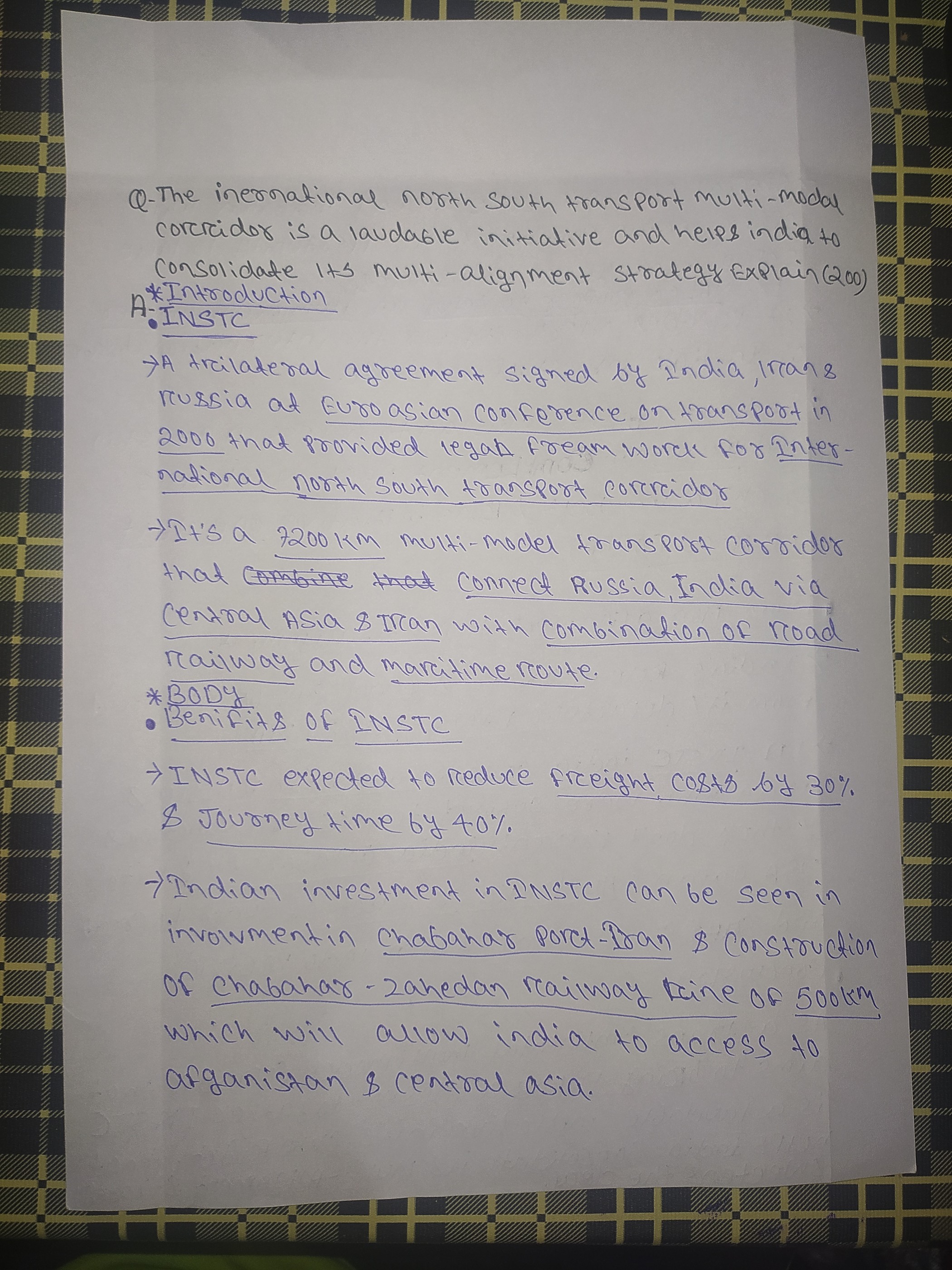 The International North South Transport multi-modal corridor is a laudable initiative and helps India to consolidate its multi-alignment strategy. Explain (200 Words)