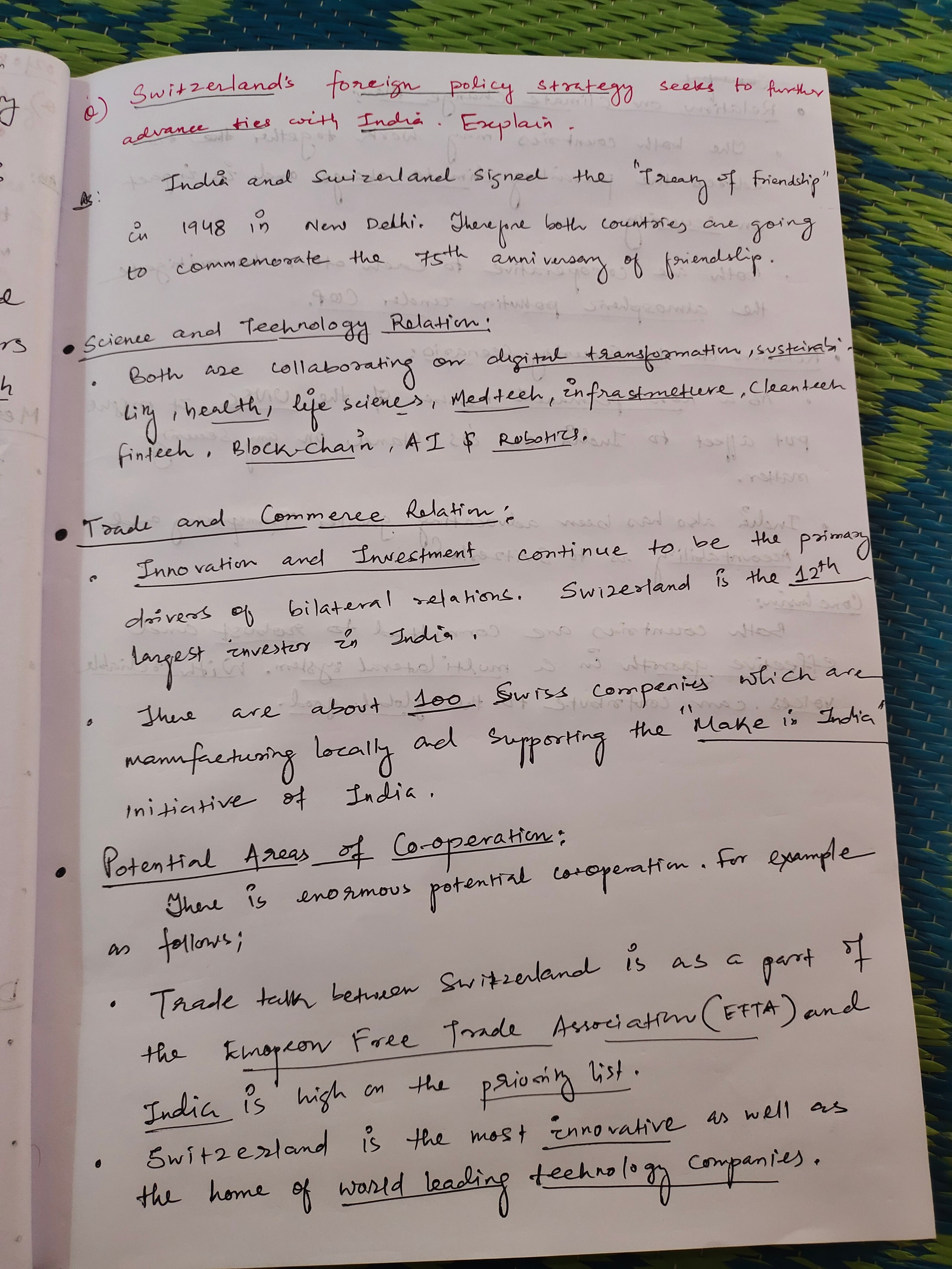 Switzerland’s foreign policy strategy seeks to further advance ties with India. Explain (200 Words)