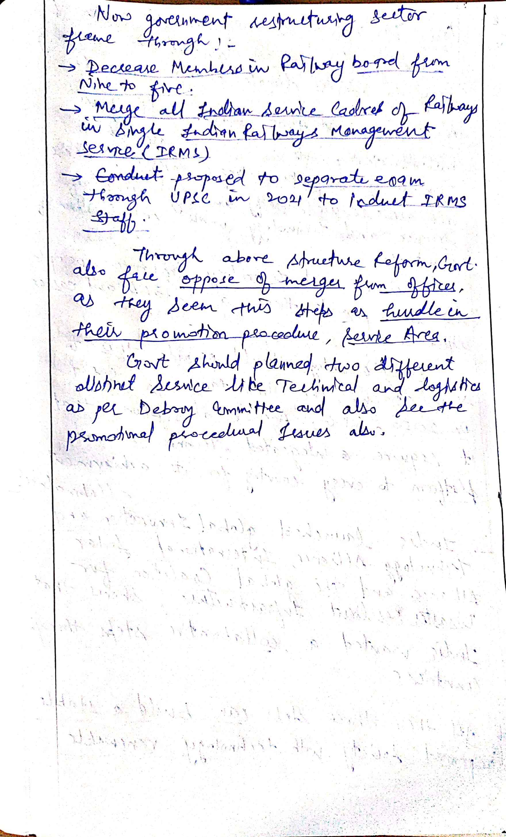 Avoid listing out points and try to explain them and discuss the need for restructuring railways. Keep Writing.