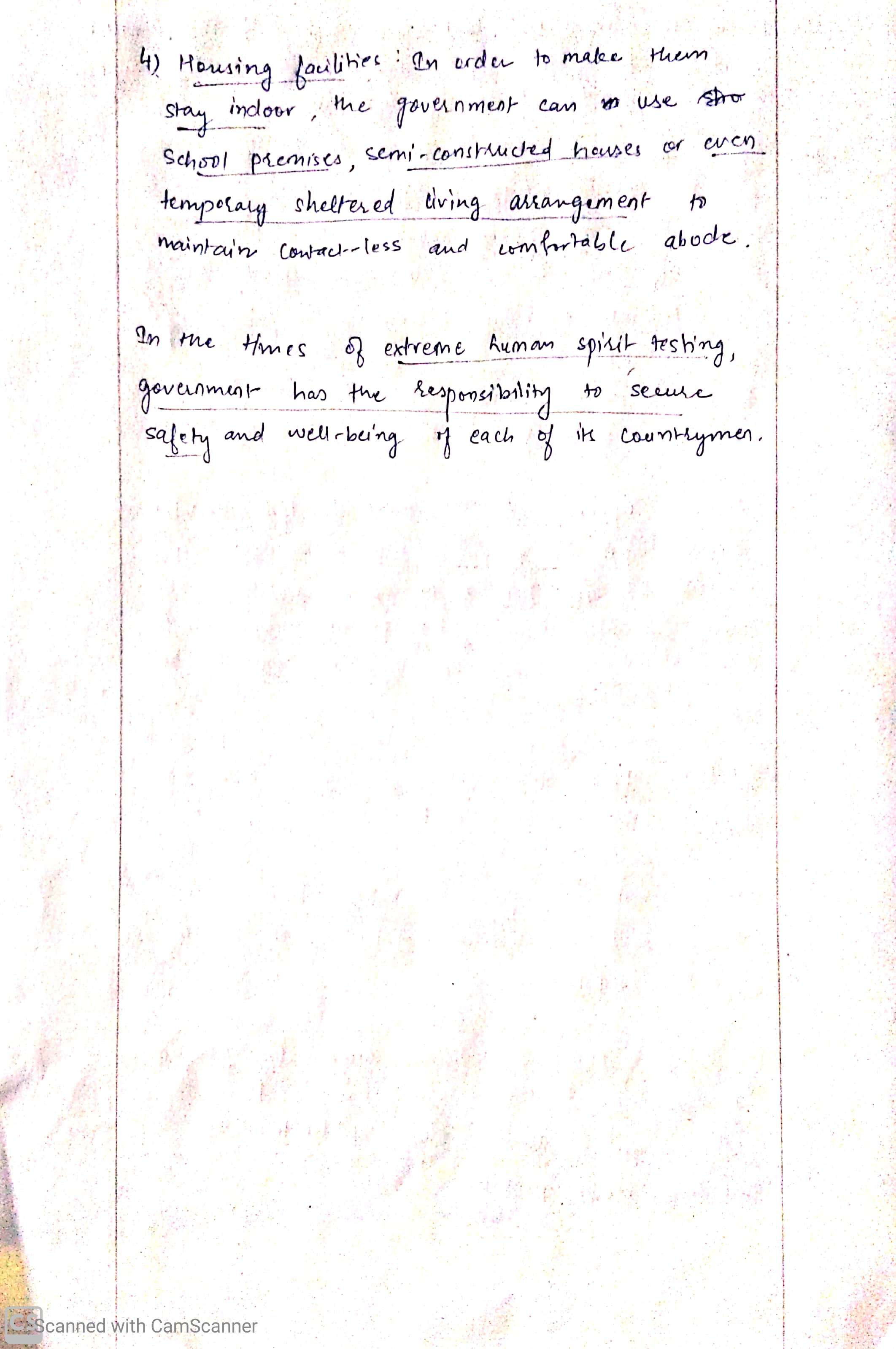 Basic Needs : Basic needs like food,clothing,shelter should be given utmost importance.Government ensured that landlords do not evict tenants for atleast a month or two.But this is not happening in every state,so Government of India should act properly in this regard,can direct state governments to monitor this issue seriously by opening complaint cells.