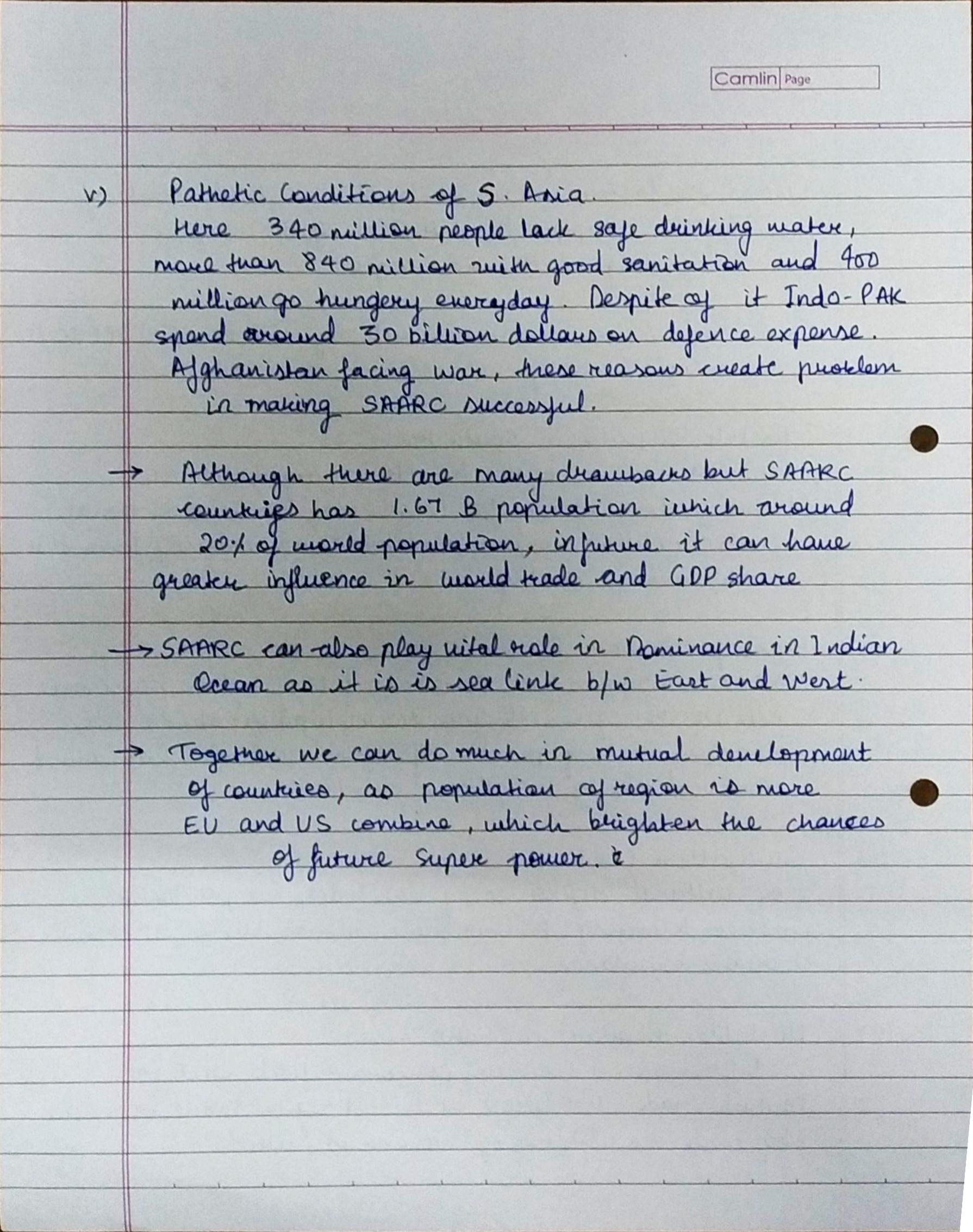 Try to include about the least integrated region, SAARC not involving in resolving bilateral issues etc. Keep Writing.