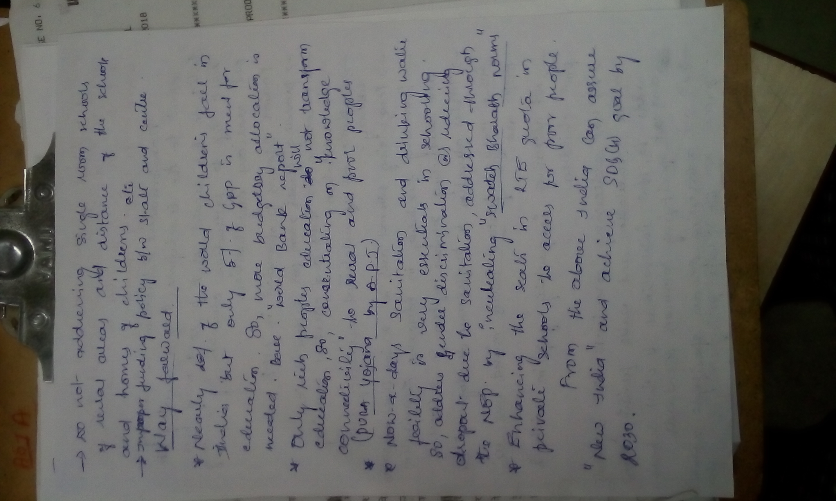 Try to include specific points about School clusters, bridging the gap between India's rich and poor etc. Keep Writing.