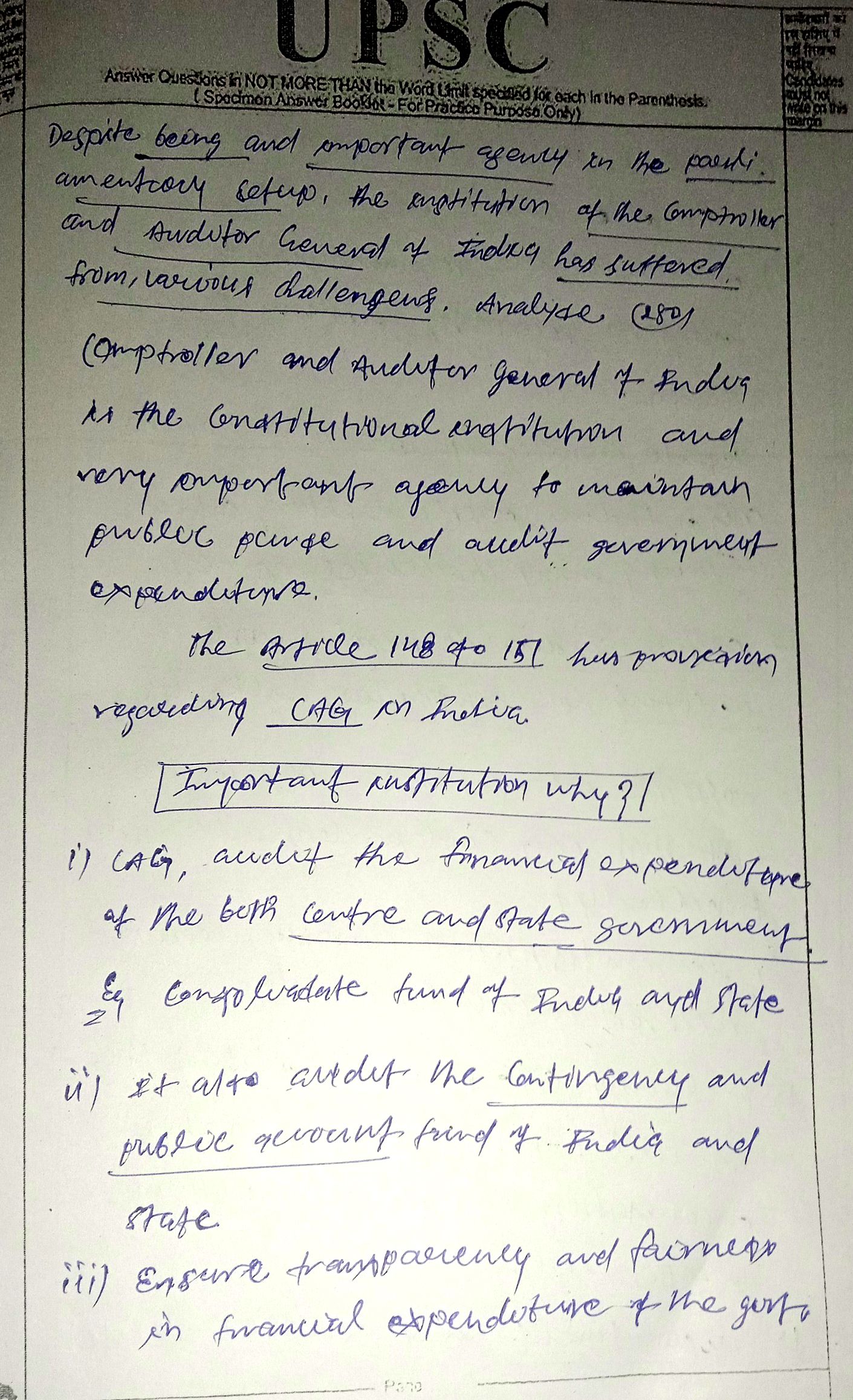 3) Despite being an important agency in the parliamentary setup, the institution of the Comptroller and Auditor General of India has suffered from various challenges. Analyse (250 words)