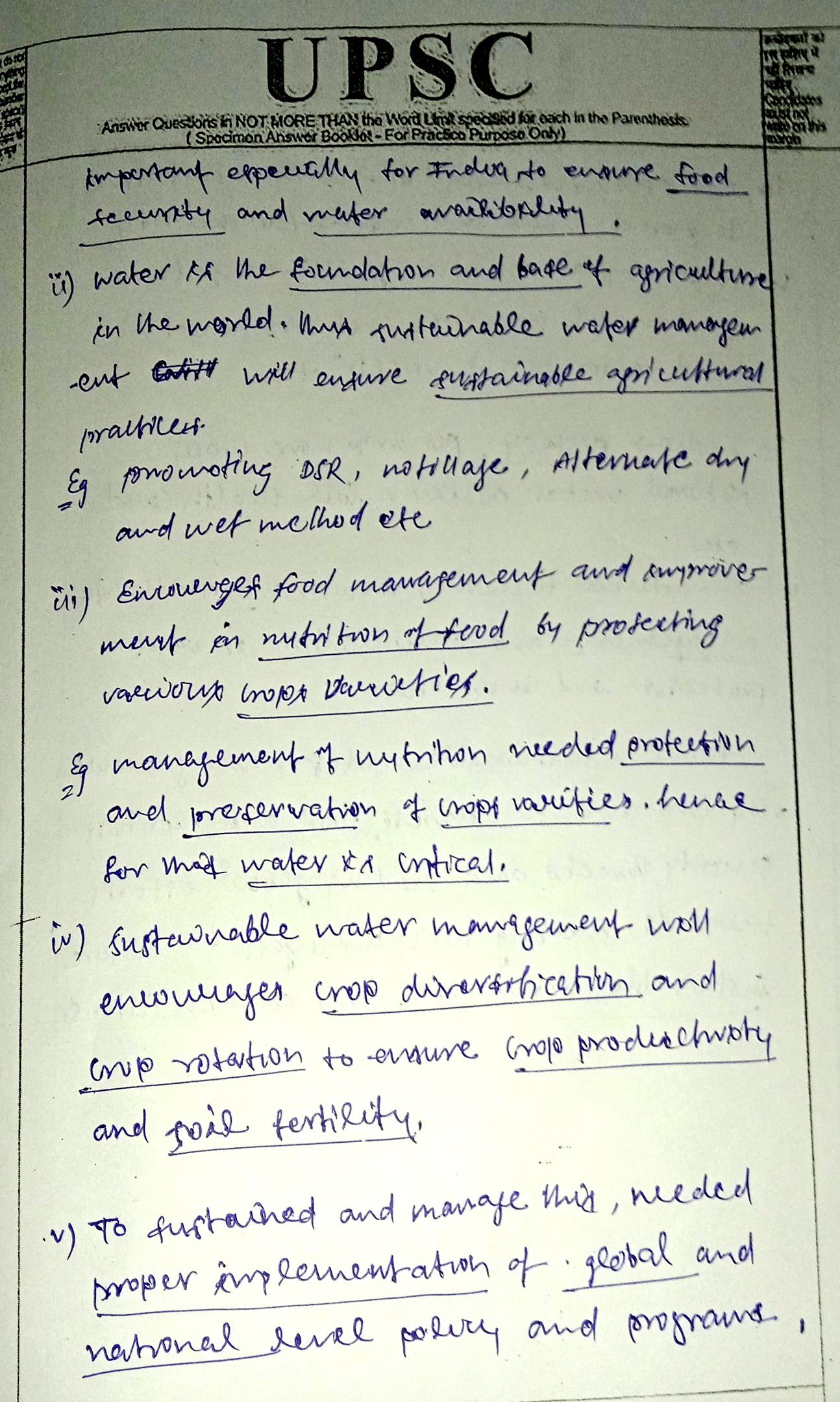 3) Sustainable water management is critical to address impending food and nutrition security threats. Evaluate (250 words)
