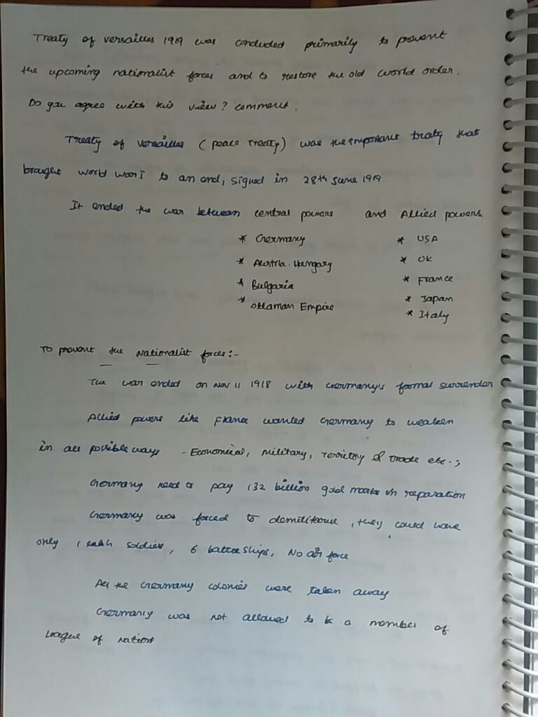 Treat of Versailles 1919 was concluded primarily to prevent the upcoming nationalist forces and to restore the old world order. Do you agree with this view? Comment (200 Words)
