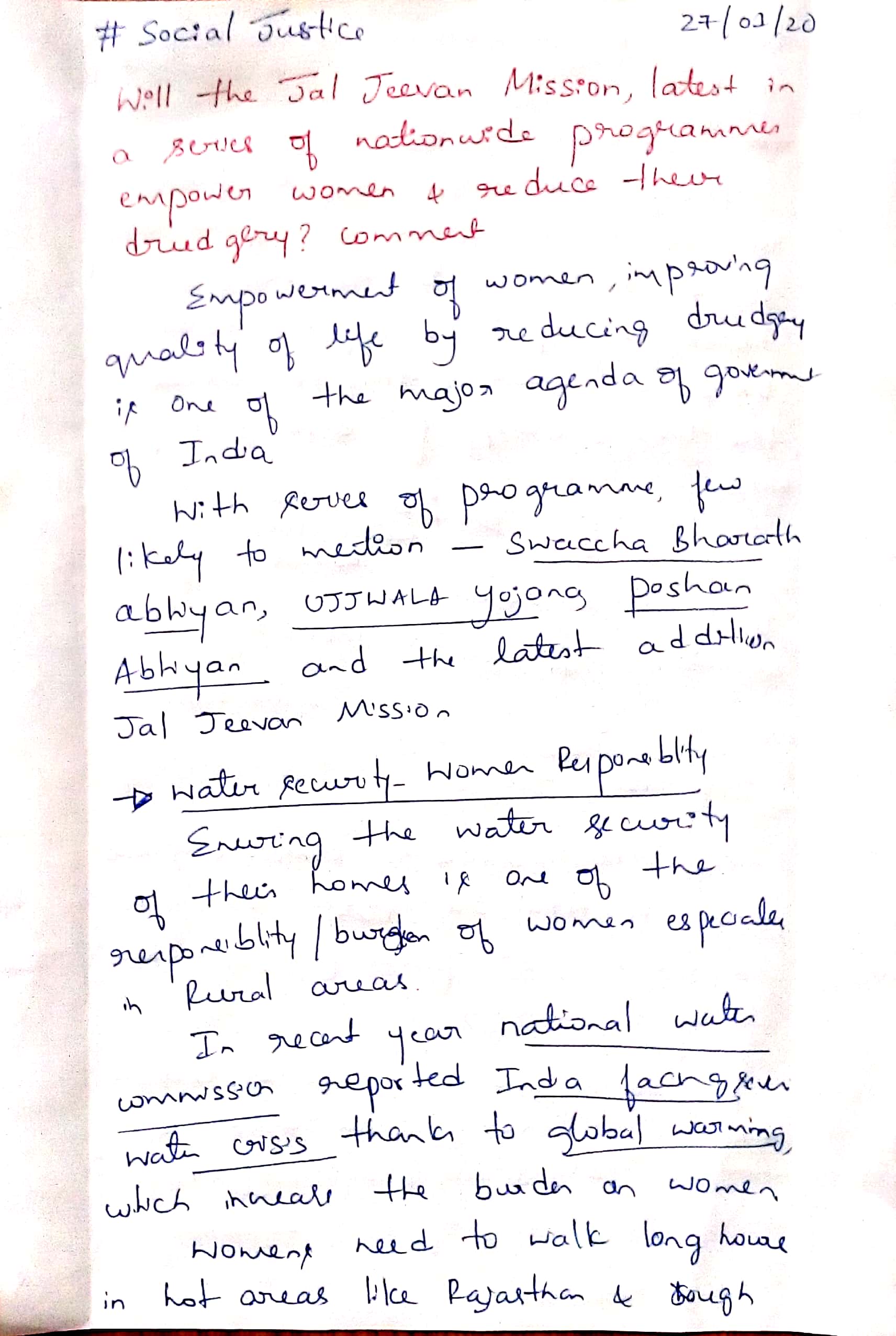 Will the Jal Jeevan Mission, latest in a series of nationwide programmes empower women and reduce their drudgery? Comment (200 Words)